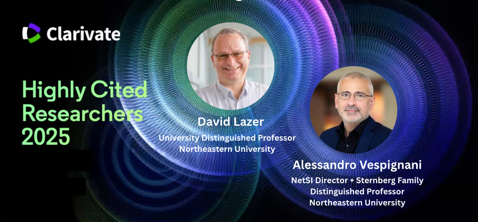 The Network Science Institute is proud to announce that two of its distinguished faculty members, David Lazer and Alessandro Vespignani, have been recognized on Clarivate's Highly Cited Researchers 2025 list. This prestigious honor is reserved for only 1 in every 1,000 scientists and social scientists worldwide and it acknowledges researchers whose work has demonstrated exceptional influence and impact in their respective fields.