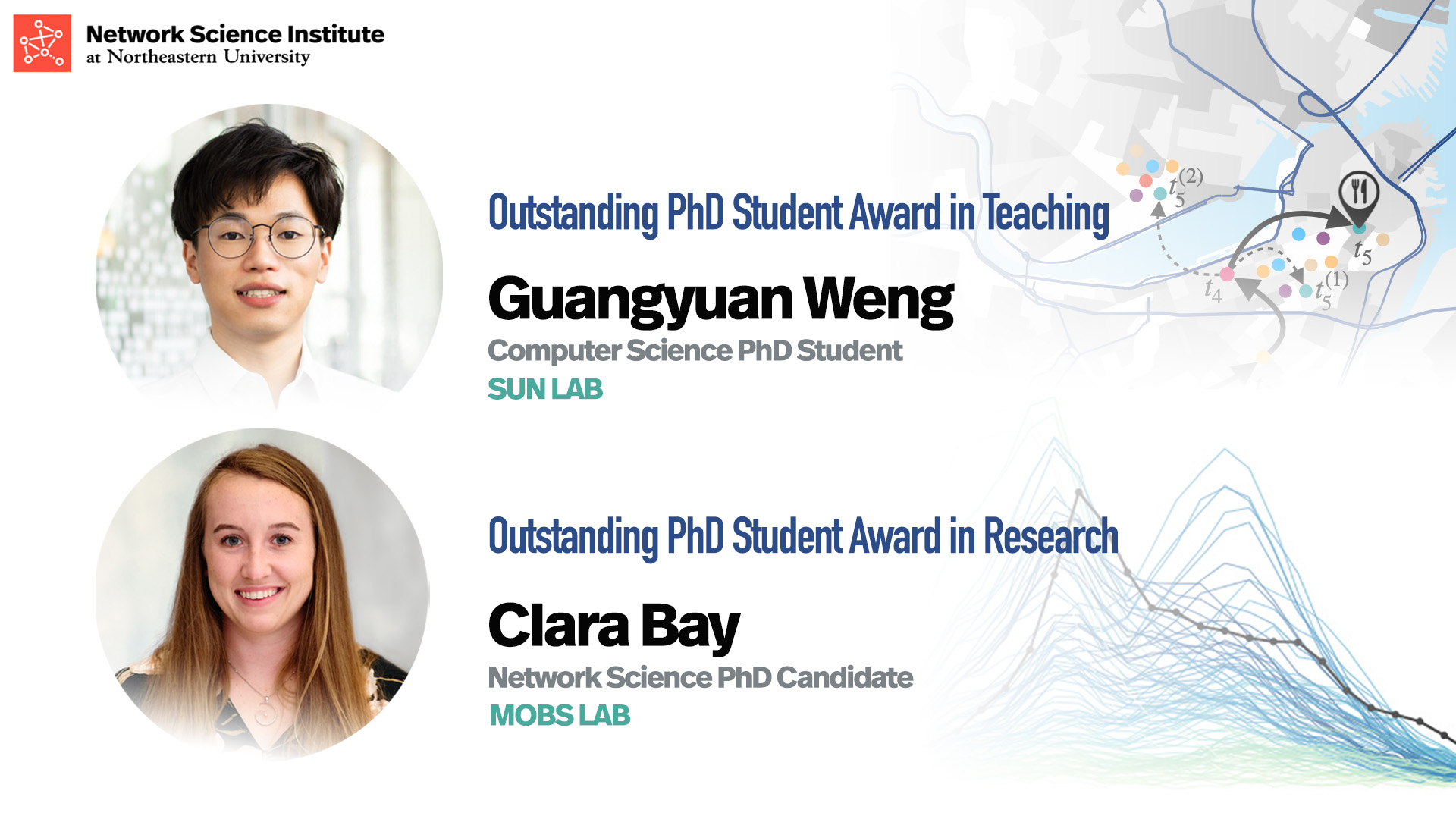 The Network Science Institute is proud to announce that two of our PhD students have been honored with Northeastern University's Outstanding PhD Student Awards.